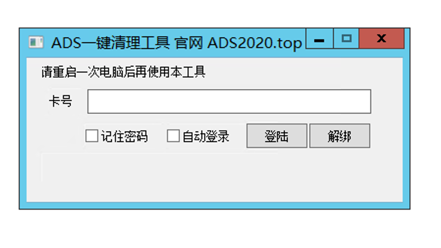 No need to uninstall other software in advance, restart the computer directly with this tool to clean up, reinstall on it; unlimited number of cleanup, logging in once cleaned up once, after installing ADS don’t log in again !!!!!